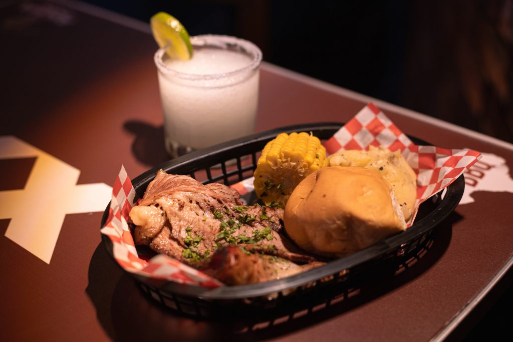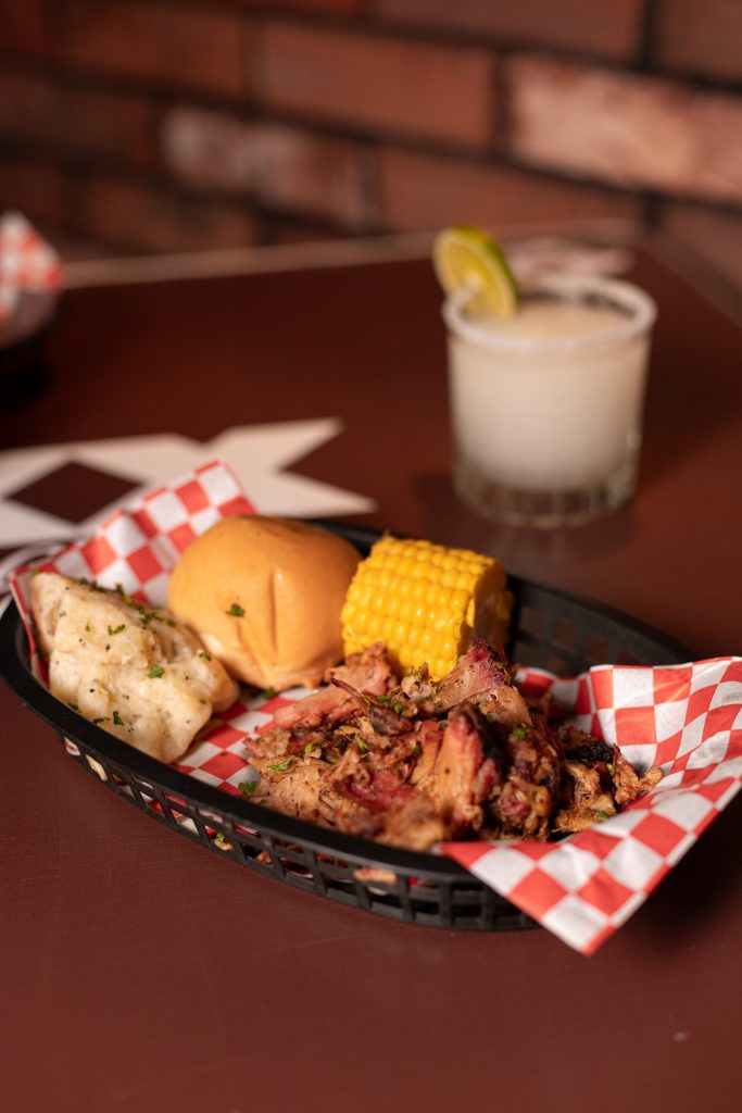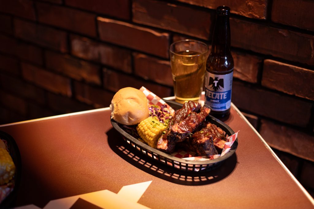 800 gramos de costilla de cerdo St. Louis, acompañado de 1 bollo, 1 elote amarillo y un acompañamiento.
