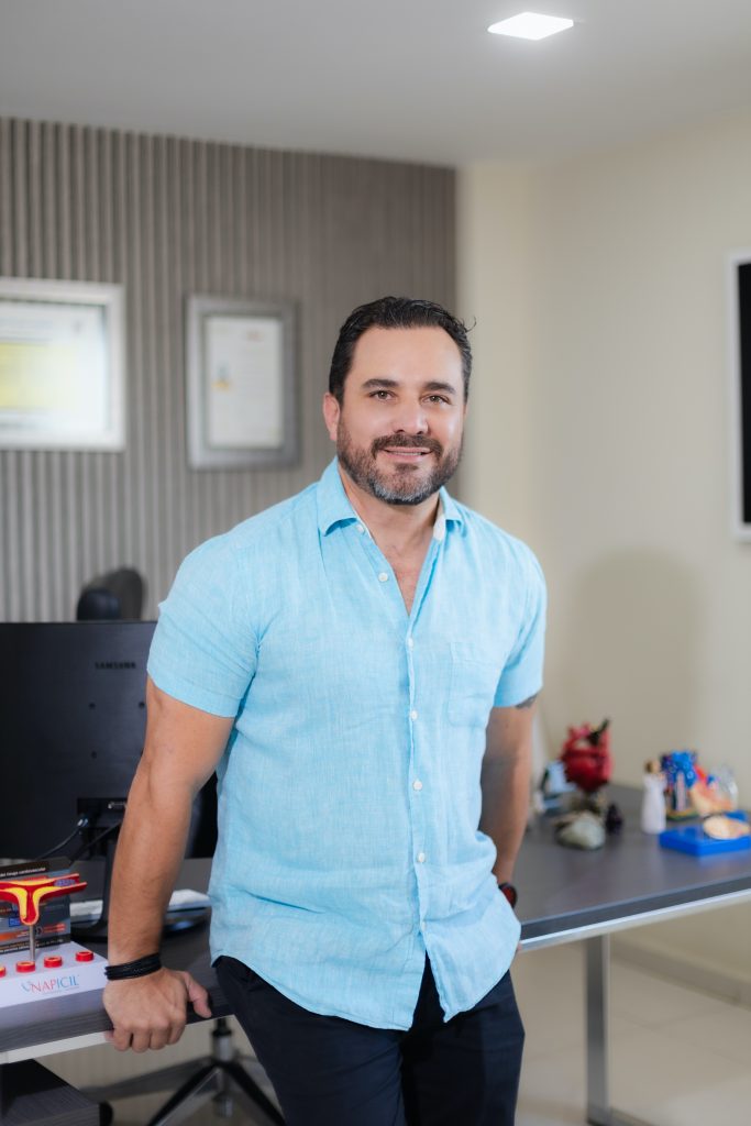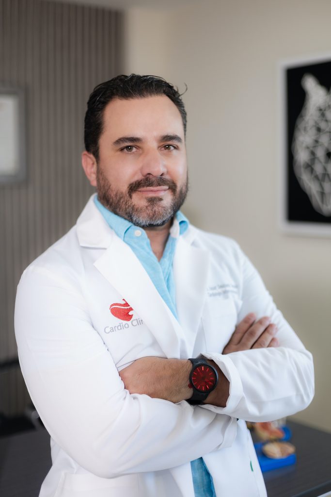 El Dr. Anuar Delahanty es cardiólogo clínico e intervencionista. Proviene de una familia de médicos, siendo su abuelo, el Dr. Luis Delahanty, otorrinolaringólogo, y su tío, el Dr. Ramón Delgado, cardiólogo, una formidable inspiración y ejemplo en su camino hacia la medicina. Con gran pasión, el Dr. Delahanty cursó los postgrados que le permitieron especializarse en esta área, siempre priorizando el bienestar de sus pacientes.