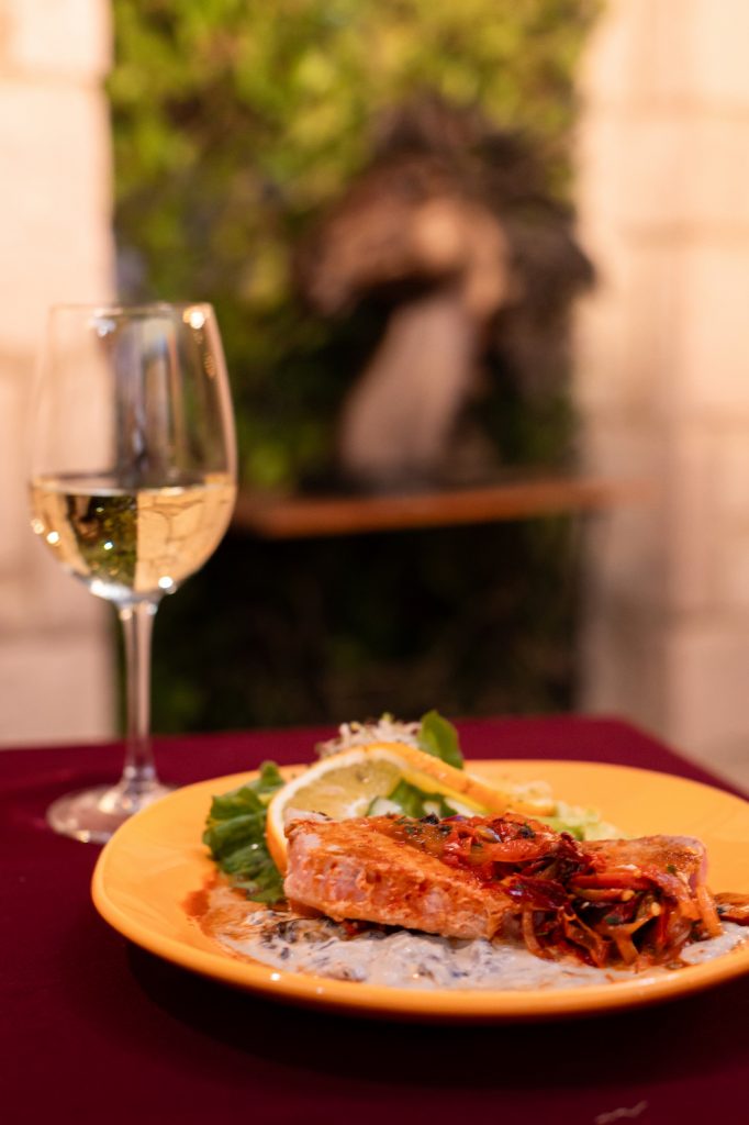 Atún fresco sellado a la parrilla sobre una crema de champiñón portobello, acompañado de una mezcla de chiles secos y una ensalada italiana fresca. Un balance perfecto entre sabores intensos y frescos.