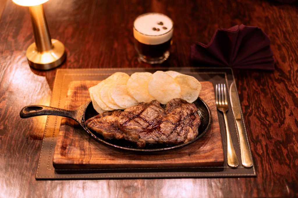 Carne premium con un buen nivel de marmoleo, asada al término de su elección, acompañada de papas Saratoga.