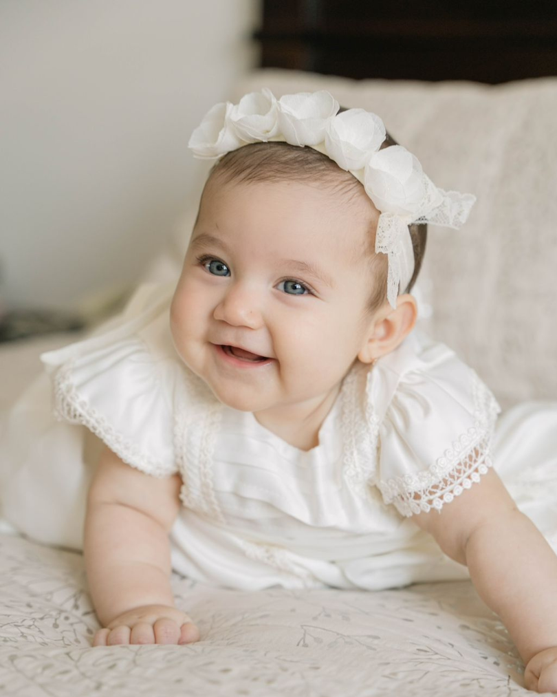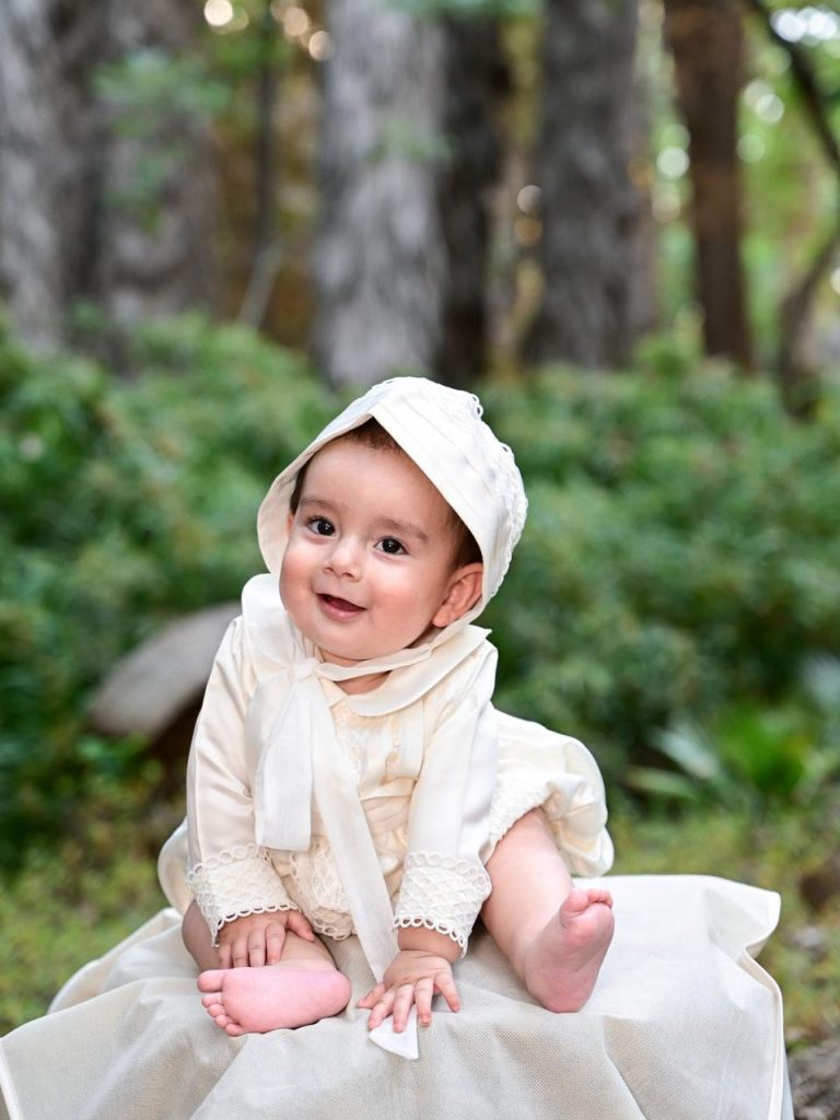 Cada ropón está confeccionado con telas de alta calidad como lino, encajes finos, organza y bordados artesanales. Además, personalizamos los sets con bordados hechos a mano, donde se puede incluir el nombre del bebé o la fecha del bautizo, y complementamos con accesorios de plata, lo que hace a cada pieza verdaderamente única.