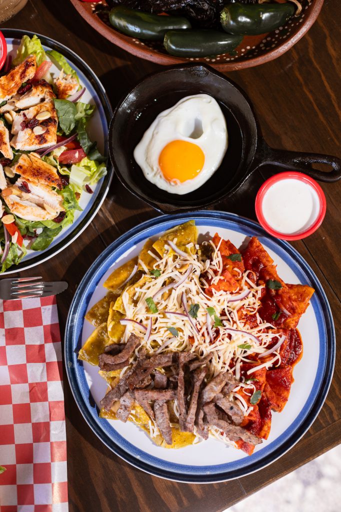 Chilaquiles: Un platillo delicioso que permite a los comensales personalizar su plato según sus preferencias, eligiendo entre una variedad de salsas, como verde, roja, roja dulce, poblana, chipotle, morita, ranchera, habanero, cremosa o elote-jalapeño. Los chilaquiles se pueden disfrutar en su versión sencilla o acompañados de proteínas como huevo (al gusto), pollo, bistec o pastor, lo que permite una experiencia totalmente personalizada.